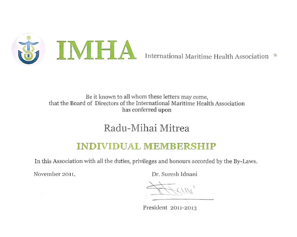 Centrul de Diagnostic si Tratament Medo Brasov este partener al acestei asociatii internationale, fiind prezent prin reprezentantii sai la la toate evenimentele si actiunile care au loc in domeniul medicinii maritime internationale.