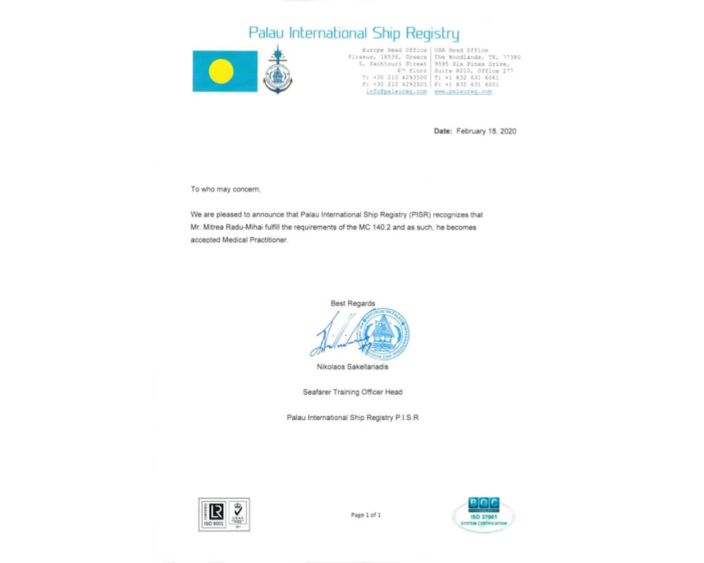 Clinica medicala privata Medo este una dintre putinele clinici medicale din Romania acreditate pentru oferirea de servicii medicale pentru medicina maritima internationala, dar si pentru consultatii medicale internationale.